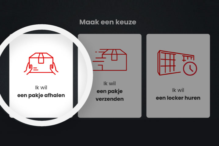Tik op het scherm op ‘Ik wil een pakje afhalen’.