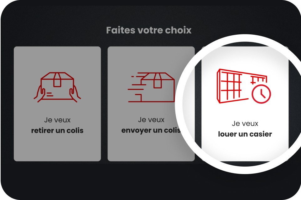 Sur l’écran, sélectionnez « Je veux louer un casier ».