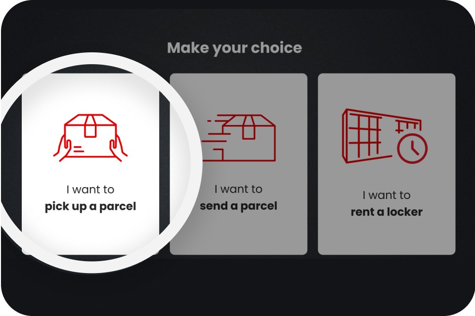 Tap ‘I want to pick up a parcel’ on the screen.