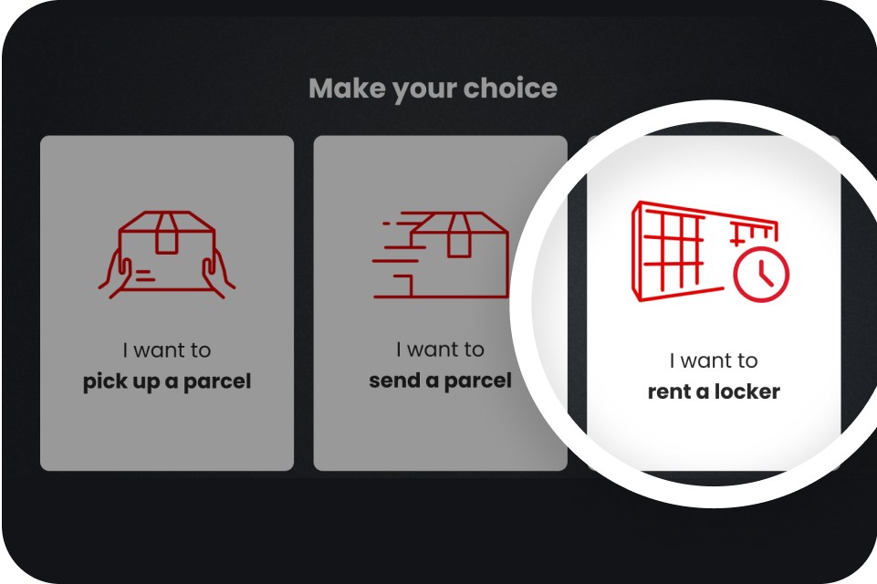 Head to one of our test locations and tap ‘I want to rent a locker’ on the screen.